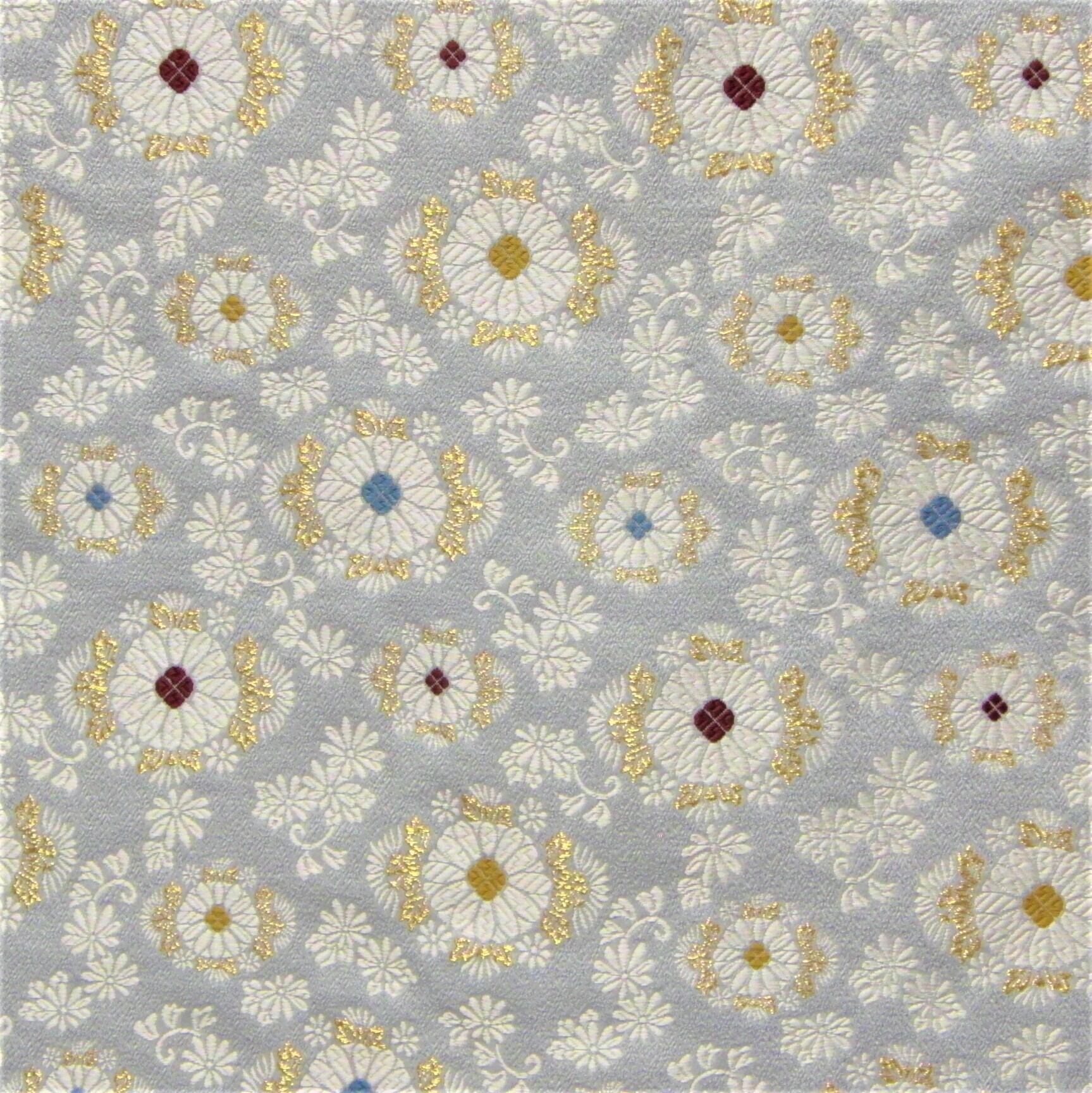 白で現代的な菊模様、葉を金で織り込んであります。