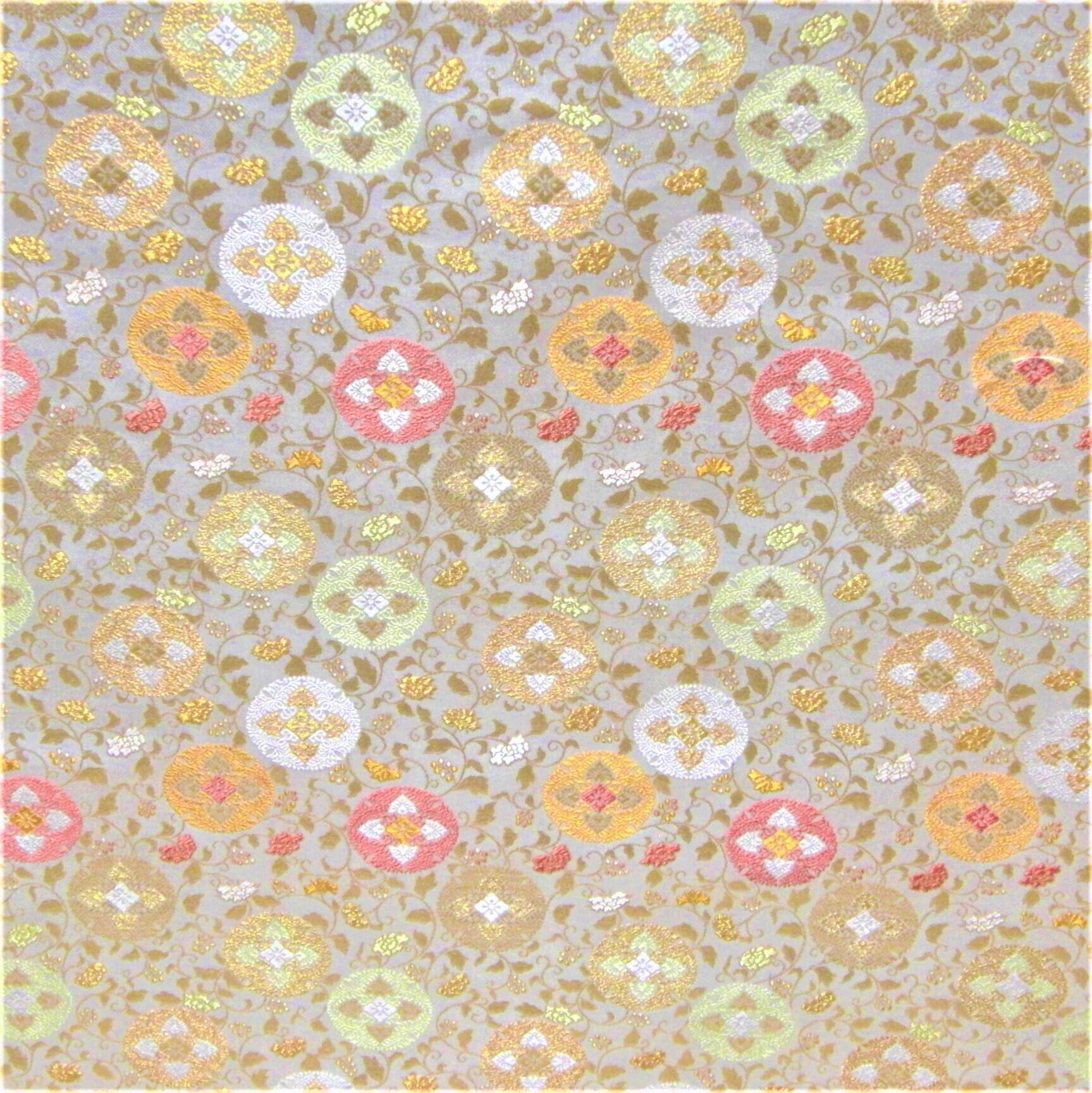 図柄は金、薄ピンク、オレンジ、白、薄緑の