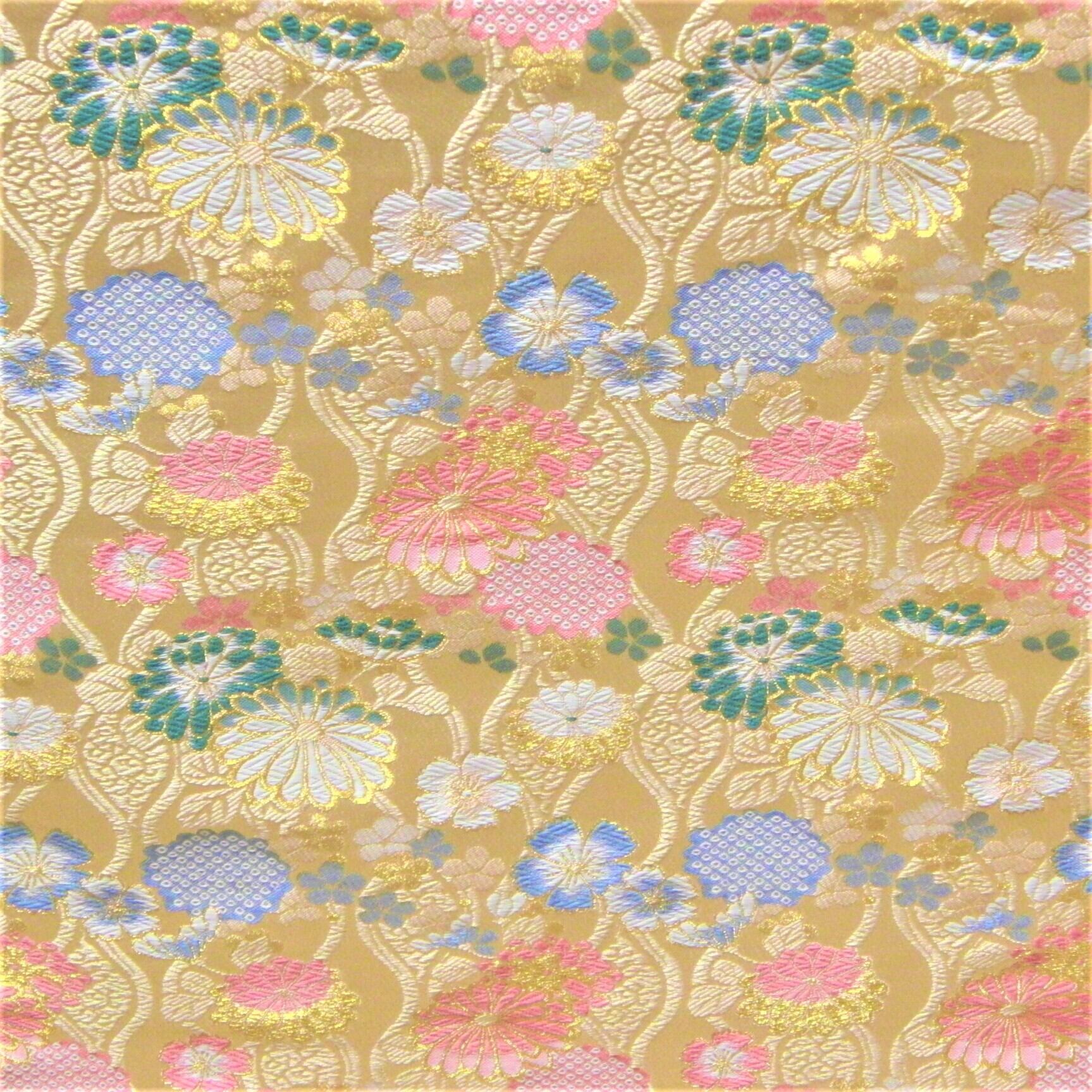 柄は金枠の色彩豊かな菊、桜、かのこ。